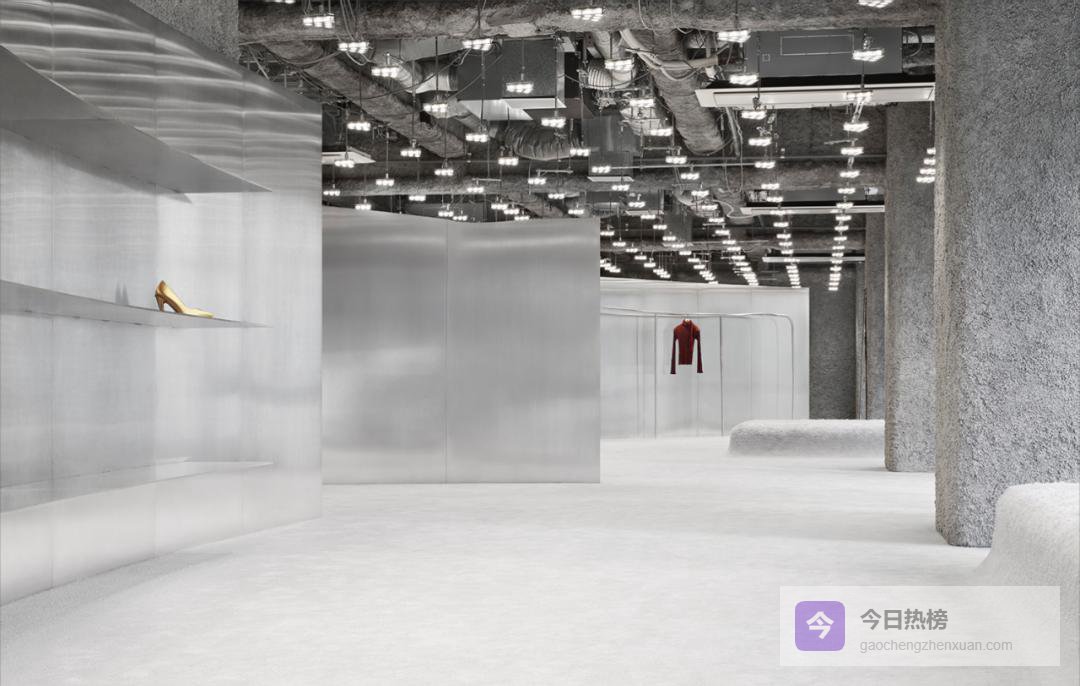 Texture:不锈钢隔板配羊毛地毯,Acne Studios用“冷”与“暖”的碰撞告诉客人:粗糙与精致可以共处一室。