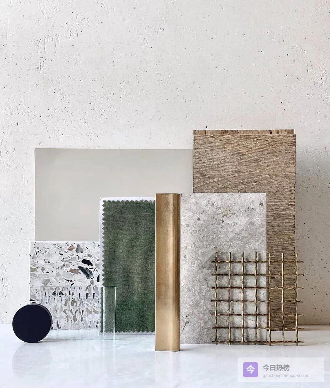 材料搭配:把前期提取的语言做成材料板,像调色盘一样反复试错。