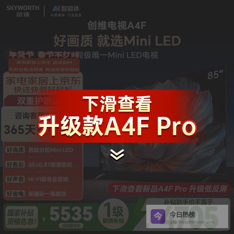 创维电视A4F 85英寸 百级分区Mini LED 144Hz高刷 HI-FI音响 一级能效 国家补贴¥