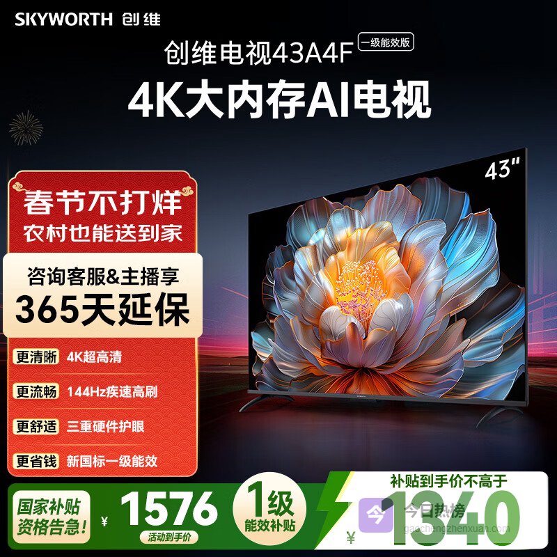 ①创维A4FD 43英寸4K护眼电视,老人小孩都安心