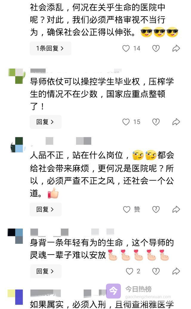 对于一个优秀的医学研究生的离世,大家都为她感到惋惜,何苦一直扎根在这一个行业,哪怕换一个或许都会有其他的结果,23岁就结束自己的生命实在太可惜了。