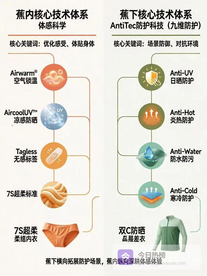一个是“苹果派”的产品信徒,从内衣颠覆开始,用体感科学重新定义基本款;一个是“小米系”的赛道鲸吞者,以防晒伞为据点,用轻量化户外破圈人群。2025年,功能性服饰市场规模突破6400亿元,当行业红利持续释放,这两家“蕉”姓品牌却给出了截然不同的解题思路。