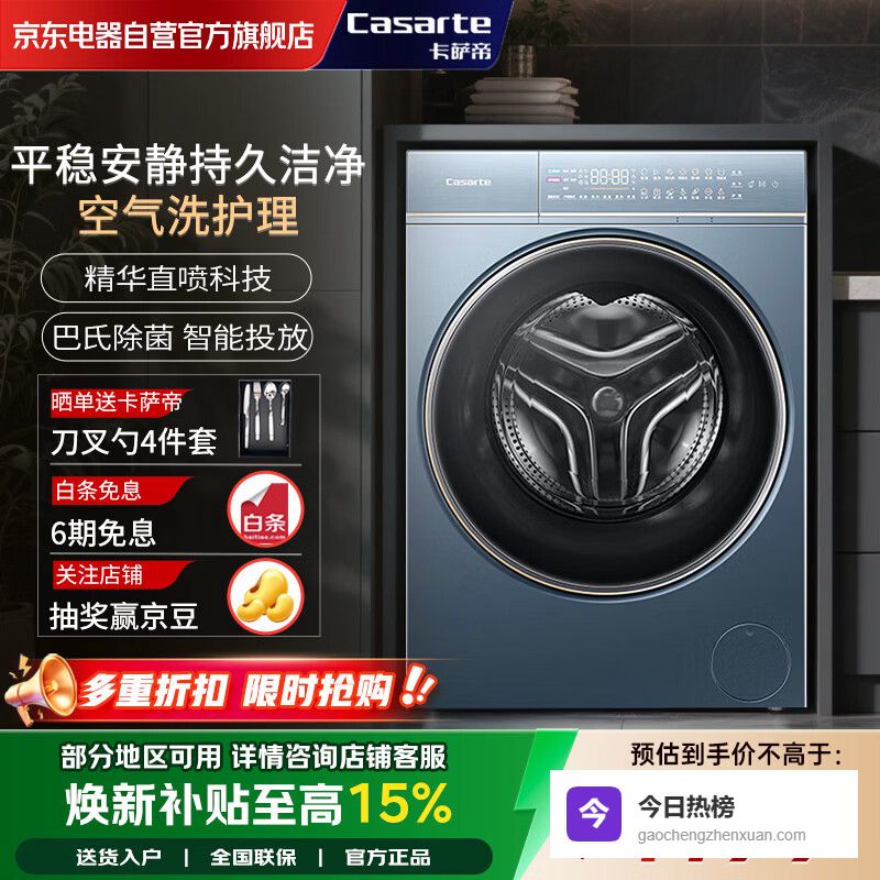 八、卡萨帝超薄大筒设计:这款卡萨帝洗衣机采用525mm宽的大筒径,机身超薄设计,能节省不少空间,放在阳台、卫生间都挺合适。无论是放在小户型还是家里空间有限的地方,都能轻松搞定,还能和家里的装修风格很搭。