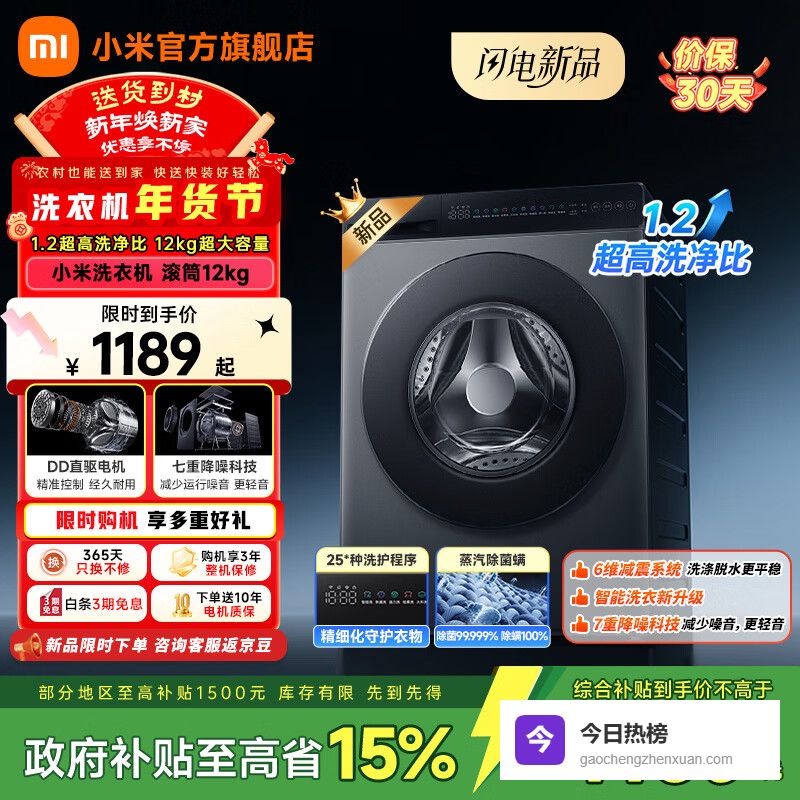 2026年洗衣机焕新必看:9款高洗净比洗衣机推荐,推荐几个质量好性价比高品牌一、米家超大洗涤容量:这款洗衣机有12KG的大容量,一次洗完全家一周的衣服都没问题,特别适合家庭使用,省得反复洗衣,省时间也省力气。无论是洗大件被套还是多衣服一锅搞定,都够用。