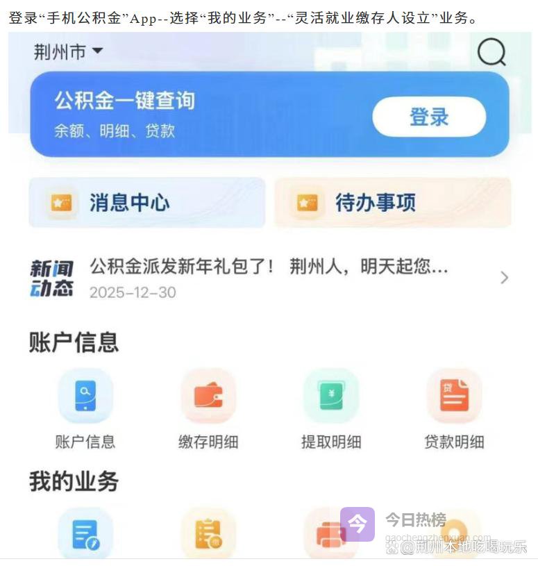 很多灵活就业的朋友想缴公积金,却总怕流程复杂、材料多、跑断腿,其实现在荆州早就可以手机全程办理,不用跑腿、不用复杂材料,几分钟就能开好户。