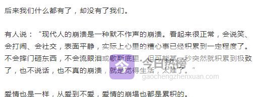 “失望不是一天累积的,分手也不是谁对不起谁,只是我们都累了。”