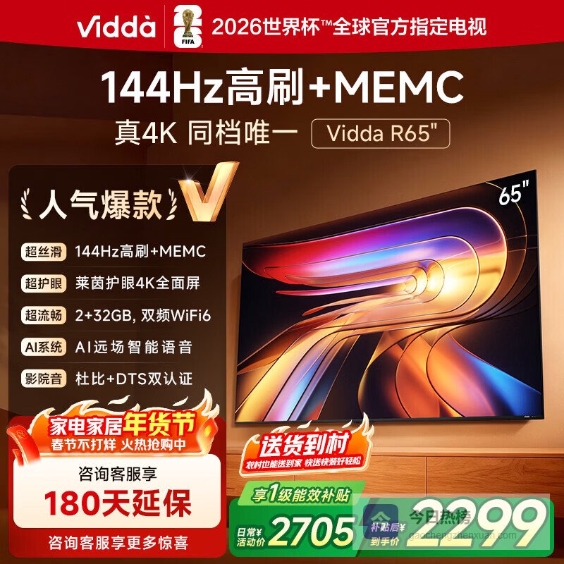 Vidda海信电视65英寸 R65 一级能效 144Hz高刷 2+32G 换新家电国家补贴液晶游戏电视65V1Q-R 65英寸¥