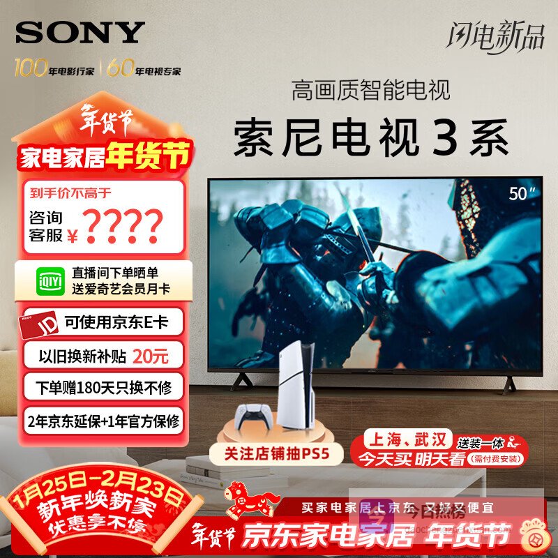 索尼(SONY)【官方直供】品质款 3系 K-50S30 50英寸索尼电视3系4K超高清平板电视液晶智能家用大屏超薄电视机 50英寸¥