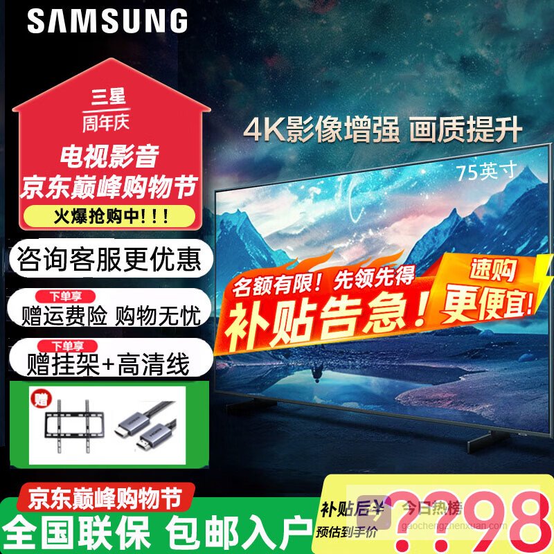 三星(SAMSUNG)75英寸 4K超高清 电视 32G内存 AI智能补帧 人工智能 网络液晶平板电视机 75英寸 开机无广告¥
