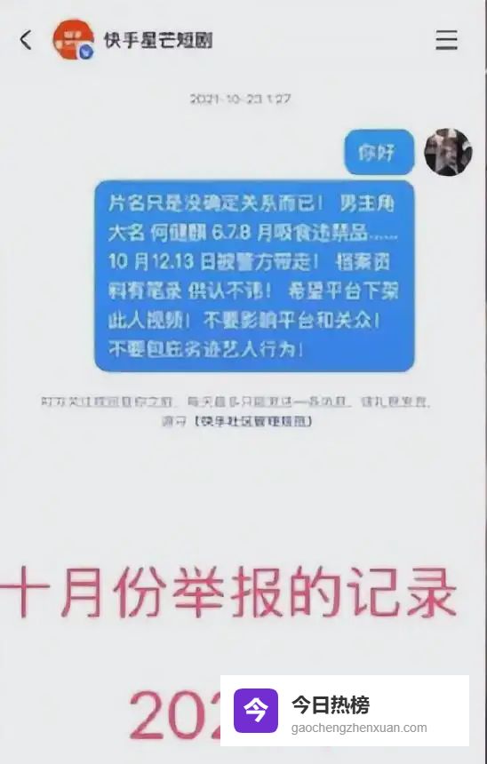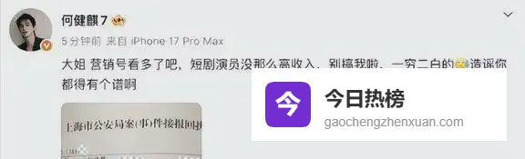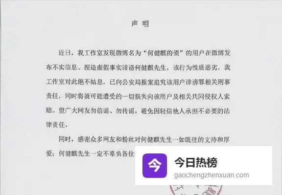 何健麒本人以及工作室火速回应,报警追究诽谤法律责任。一边是“爆料者愿意承担法律责任”,一边是“被举报者坚持报案回怼”。
