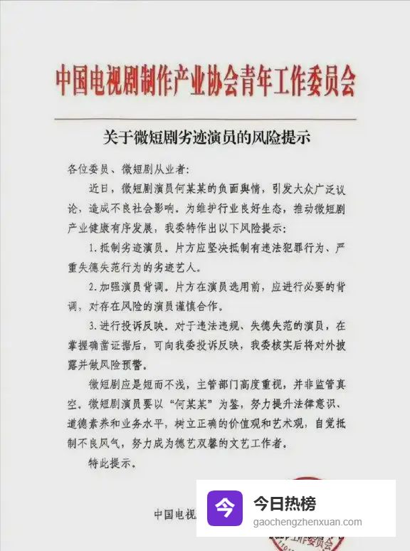 可一旦人设破碎,往往比路人更狠的就是这些曾经的拥护者。行业协会出面,发布风险提示。批评“失德失范”演员对青少年的负面影响。