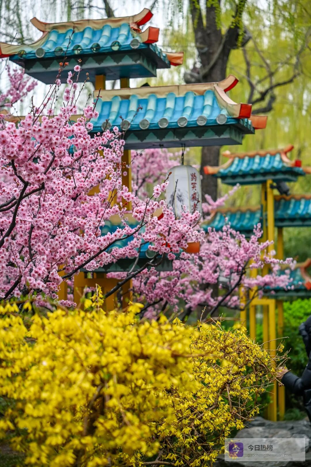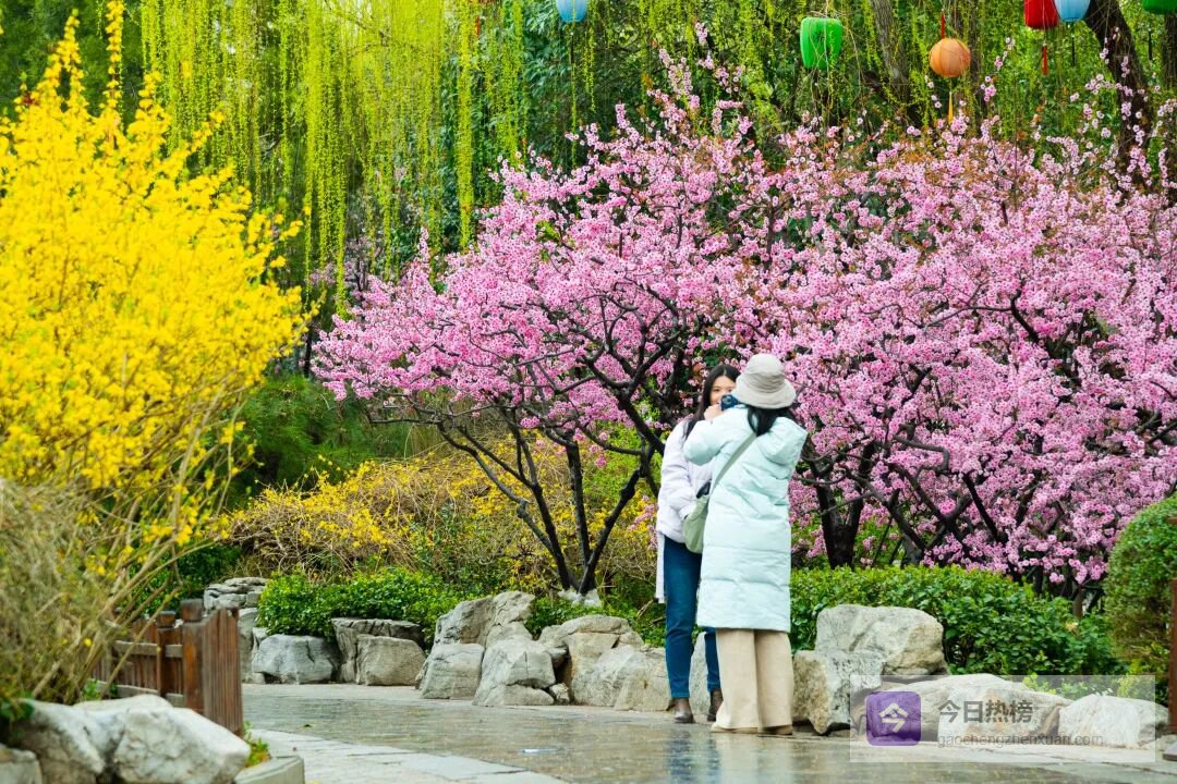 花影缀泉边,春意满亭台,园内繁花各展风姿,把趵突泉妆点得灵动又热烈。