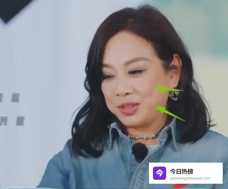 进入近距离的镜头范围,陈松伶的苹果肌呈现出上下两块的形态,中间突兀地出现了一道横线。