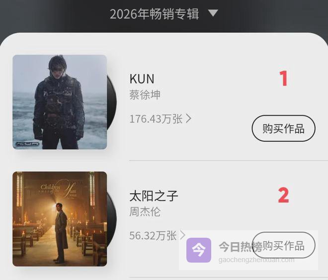 不管是和目前单平台销量第一的蔡徐坤2026年新专辑比,还是和周杰伦自己上一张专辑《最伟大的作品》比,《太阳之子》销量都差了一大截!
