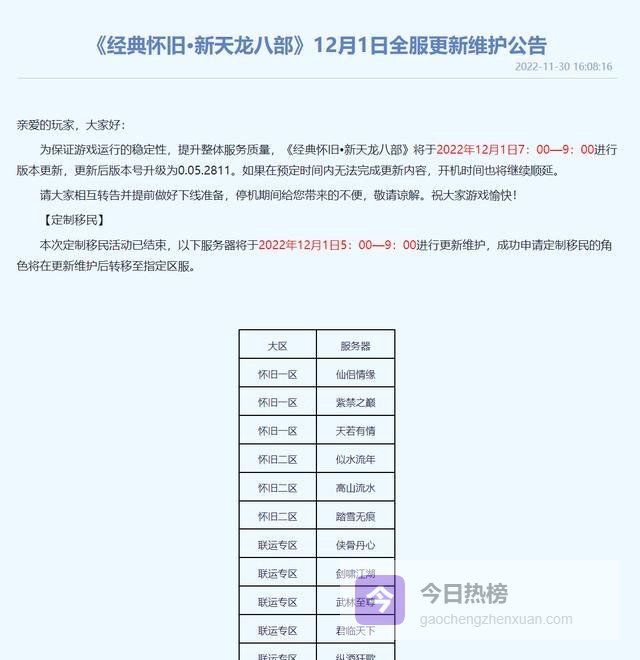 我玩这游戏十几年,从“紫禁之巅”开服熬到现在,见过合区见过鬼,但这么“坦荡”的杀鸡取卵,还是头一回。官方嘴上说着是“优化生态”、“满足需求”,可你看看这名单:“紫禁之巅”、“仙侣情缘”、“武林至尊”、“君临天下”……哪个不是当年响当当的神区,现在成了需要“被优化”的对象?