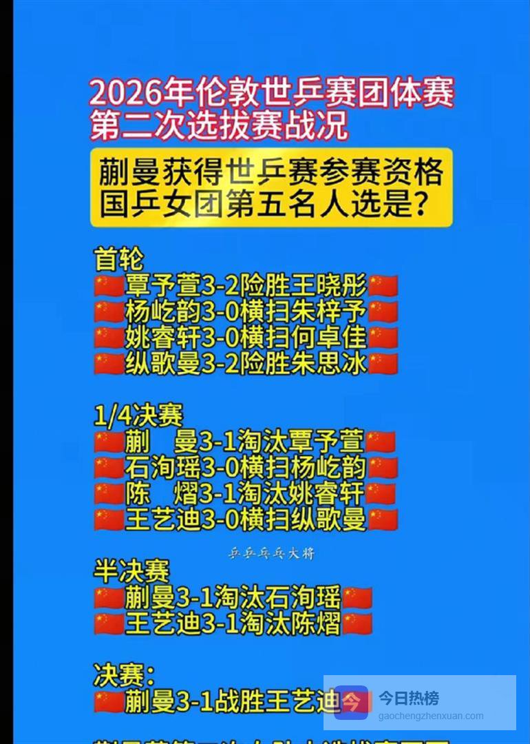 竞技场上的胜负往往在毫厘之间,但谁能想到,20个积分的微小差距,竟让国乒00后新星陈熠的职业生涯坠入冰窟。 当澳门世界杯名单尘埃落定,这个曾在大满贯赛场上横扫世界第三的少女,此刻却连参赛资格都成了奢望。 更残酷的是,3月25日的队内选拔赛将成为她的最后救命稻草——如果不能夺冠,不仅澳门之行彻底泡汤,连四月伦敦世乒赛的入场券也将化为泡影。