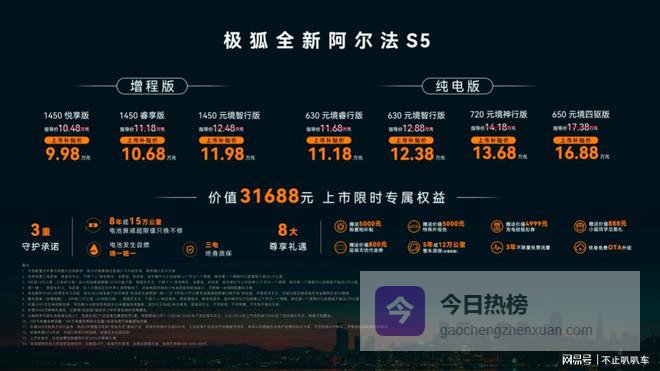 从首创全场景AI发布会,到五大越级爽感全面落地,极狐全新阿尔法S5以9.98万起的亲民价格,将城区NOA、超长续航、强悍性能、奢适座舱等高阶配置全面下放。这不仅是一台高品质代步车,更是专为年轻人打造的一台AI高性能宽体轿跑。