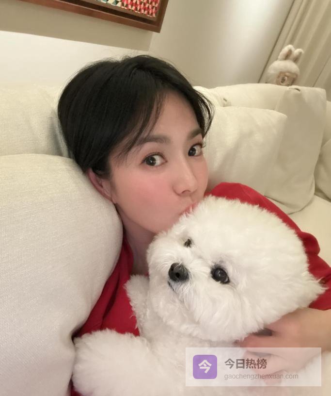 在另一组引发热议的照片中,宋慧乔完全卸下了明星光环。 她躺在家里的沙发上,穿着一身舒适的家居服,一只手将爱犬Ruby紧紧抱在怀里,另一只手举起手机自拍。 Ruby安静地依偎着她,她则对着镜头露出了毫无防备的、彻底放松的笑容。 这种与宠物相处的温馨瞬间,在她过往的社交动态中并不少见。 资料显示,Ruby是一只马尔济斯犬,对她而言如同家人,无论是私下聚会还是去健身房,她常常带着Ruby。