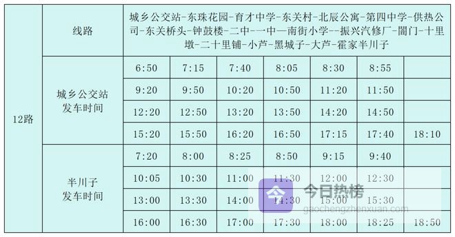 12路:城乡公交站-半川子