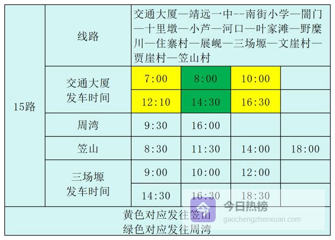 15路:交通大厦-笠山村/周湾