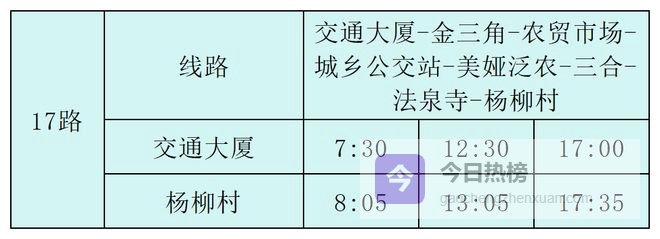 17路:交通大厦-杨柳村