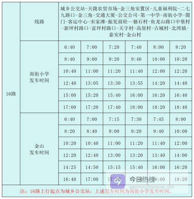 16路:城乡公交站-金山村