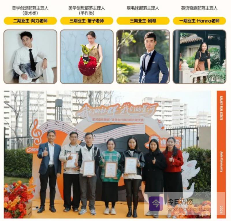 社群的长久生命力,源于多元主体的共同参与和责任共担。在本次大会上,星河地产推动的“政企商共建”模式取得了核心进展。在相关政府单位的见证下,首批四位来自业主的“明星主理人”正式亮相。他们分别是美学艺术达人、非遗手作先锋、运动爱好者和教育从业者,将成为社区活力的“代言人”与引领者。此举打破了传统社区运营中企业单方主导的局限,通过政、企、商三方合力,为业主自治提供了坚实平台与核心支撑,真正构建起资源互补、权责清晰的社区治理新生态。