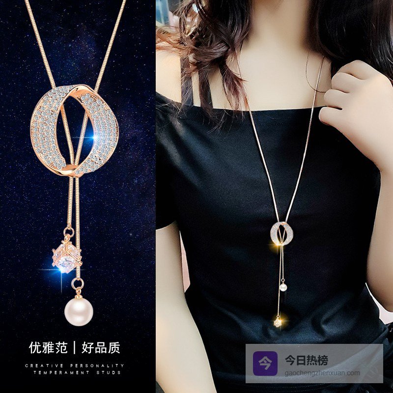 【品牌直营】伊黛儿闪锆仿珍珠高档毛衣链女潮长款项链网红百搭简约流苏秋冬时尚配饰B2Y207-B253¥