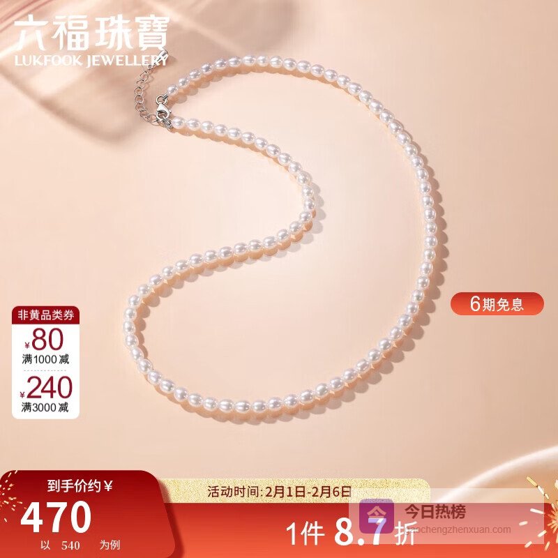 【京东自营】六福珠宝淡水珍珠项链Ag925约4-4.5mm小米珠锁骨链礼物女总重约10.26克¥