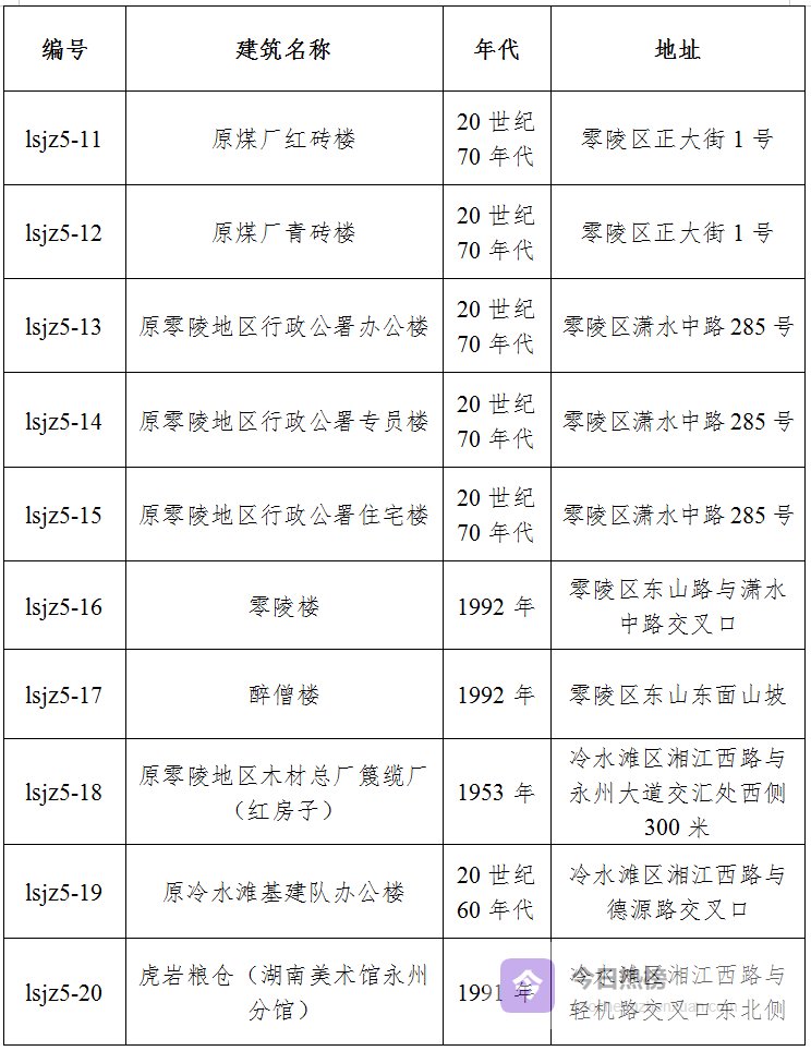 永州市第五批历史建筑名单