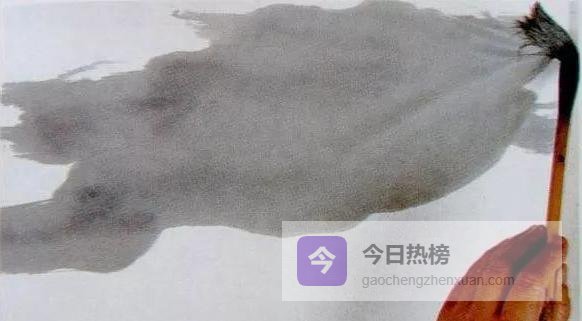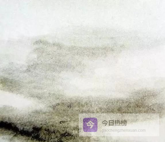 若要大面积云雾,可直接拎起整张宣纸向下倾斜,让水顺着流,停在哪便是哪。