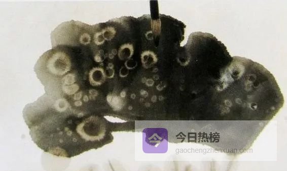 未干时手指蘸清水弹大片,清水落处圆斑瞬现;