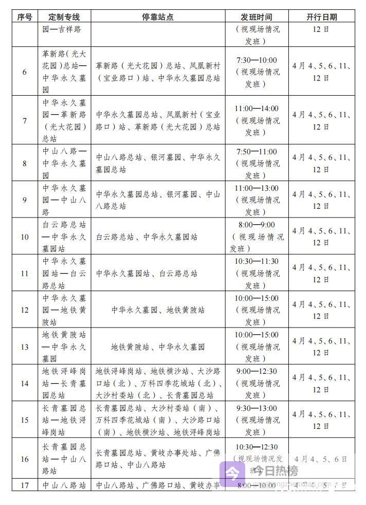 广州市内开行21条“清明定制专线”