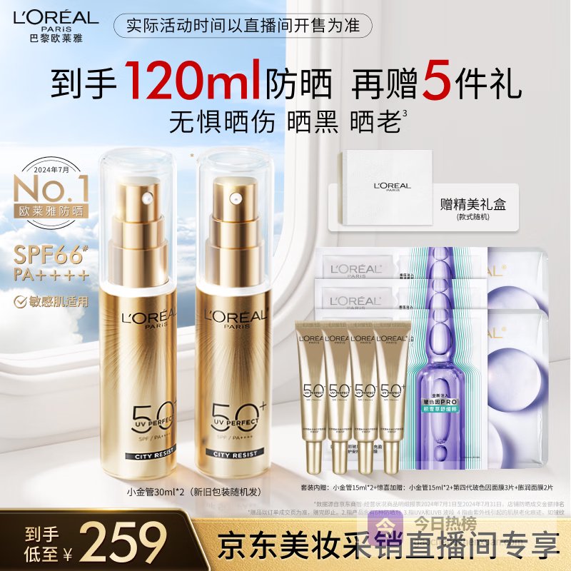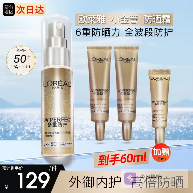 欧莱雅小金管防晒霜30m*2户外高倍隔离霜护肤品直播专享新年礼物¥