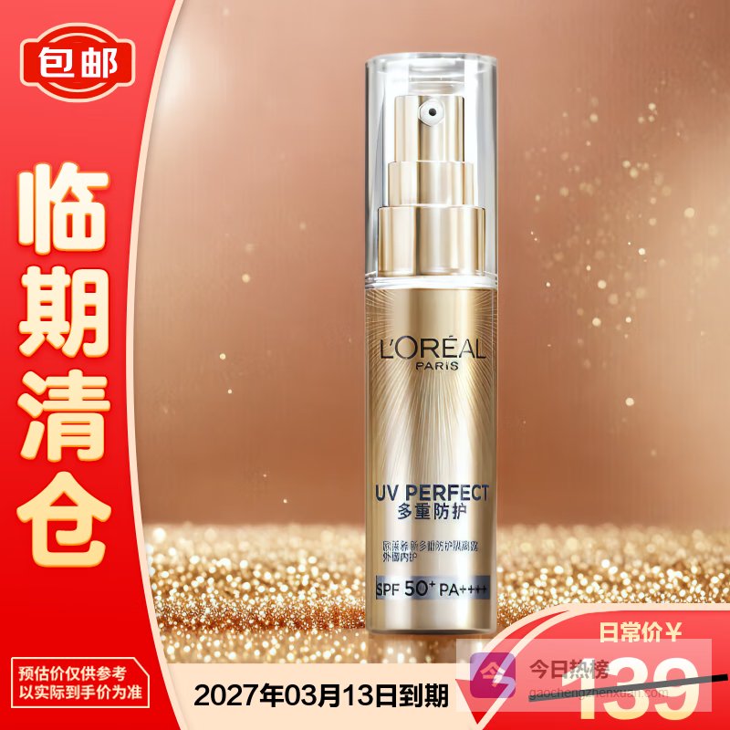 欧莱雅新多重防护隔离露小金管防晒霜30ml【临期清仓】¥