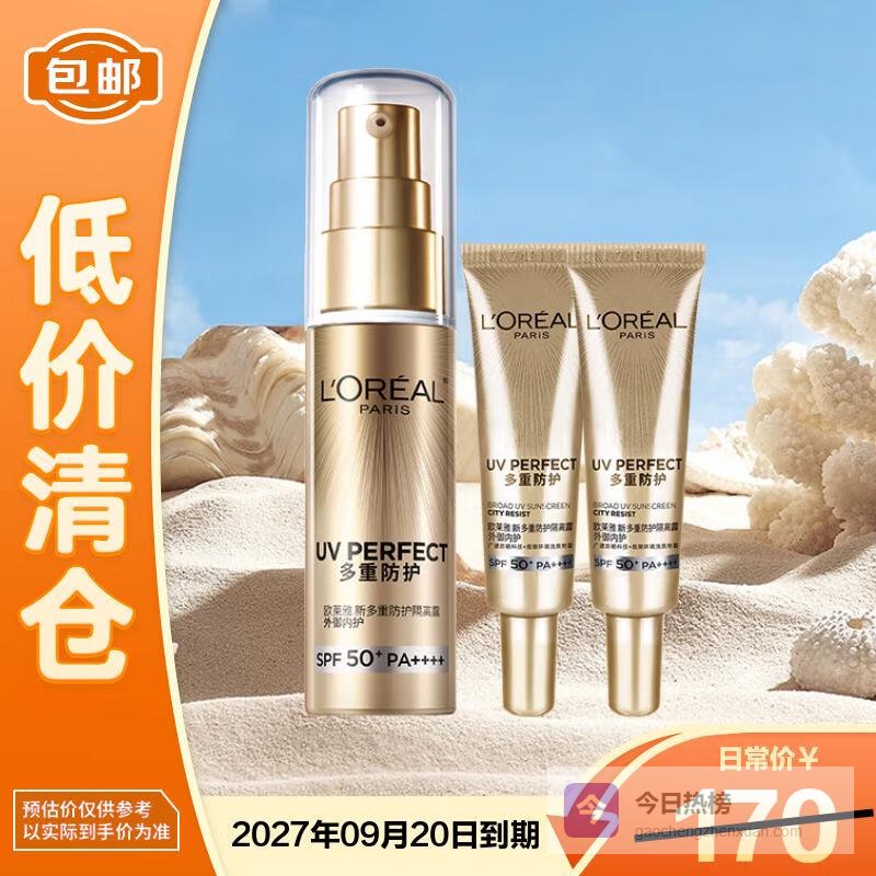 欧莱雅小金管防晒霜30ml赠送15ml*2户外隔离防晒霜SPF50+【临期清仓】¥