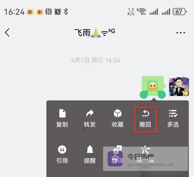 微信消息操作菜单 :展示含撤回在内的消息操作选项