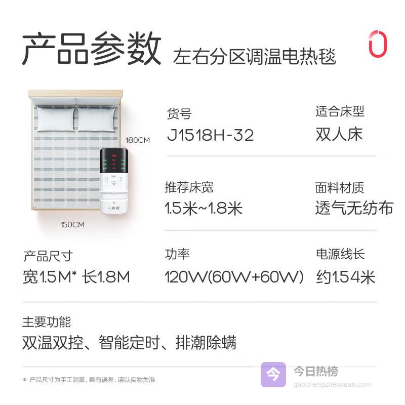 推荐理由:智能双控、快速加热、安全保护、优质面料、除螨排潮