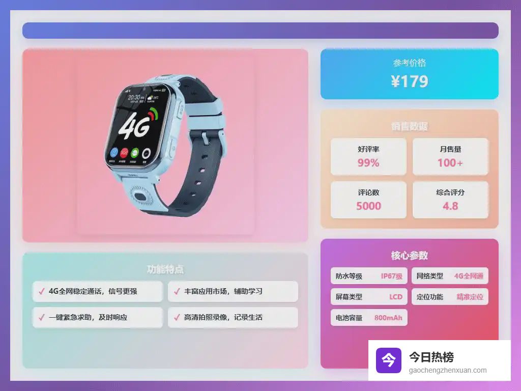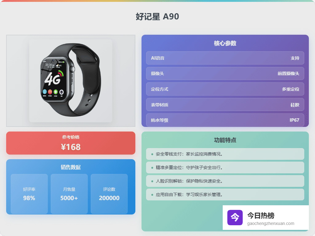 亮点:4G全网通支持、高清摄像头、智能定位追踪