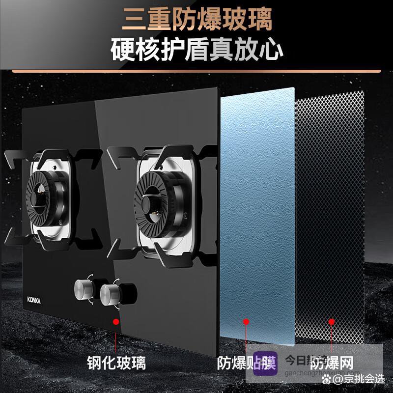 安全性也是这款灶的一大亮点。熄火保护系统能在火焰意外熄灭时,极速断气,避免煤气中毒。三重防爆钢化玻璃面板坚固耐用,确保使用安全。同时,防风设计和聚能热量的设计,使燃烧更稳定,减少外界干扰和热量外泄。配合智能定时功能,既实用又贴心,烹饪过程更安心。