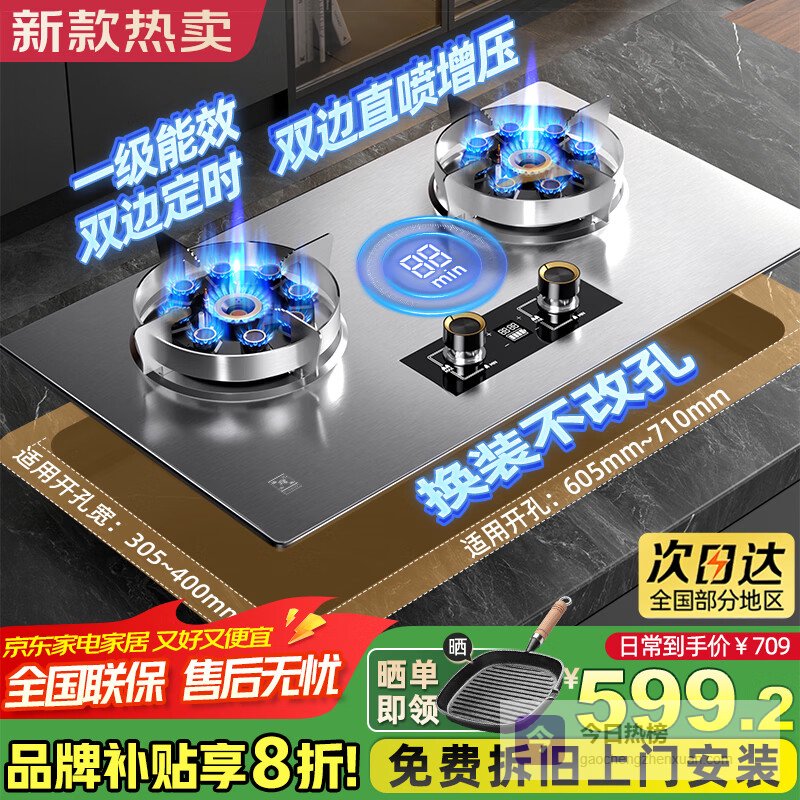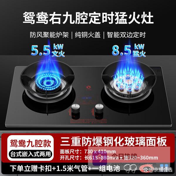 细节方面,可拆卸合金燃烧器和炉头极易清洗,保持灶具整洁。隔热聚能锅支架包裹火焰,既稳固又提升热效率。台嵌两用设计,灵活安装,无需改造台面,还能适应不同尺寸的橱柜,满足多样厨房需求。