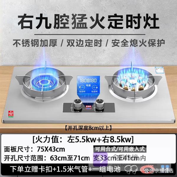 “双灶设计”让你可以同时操作不同菜品,大大提升烹饪效率。防风聚能炉架稳固耐用,确保火焰不受外界风干扰,持续稳定燃烧。定时功能让烹饪更安全、方便,设定后自动熄火,避免误操作,还配备蜂鸣提醒,防止忘记关火。