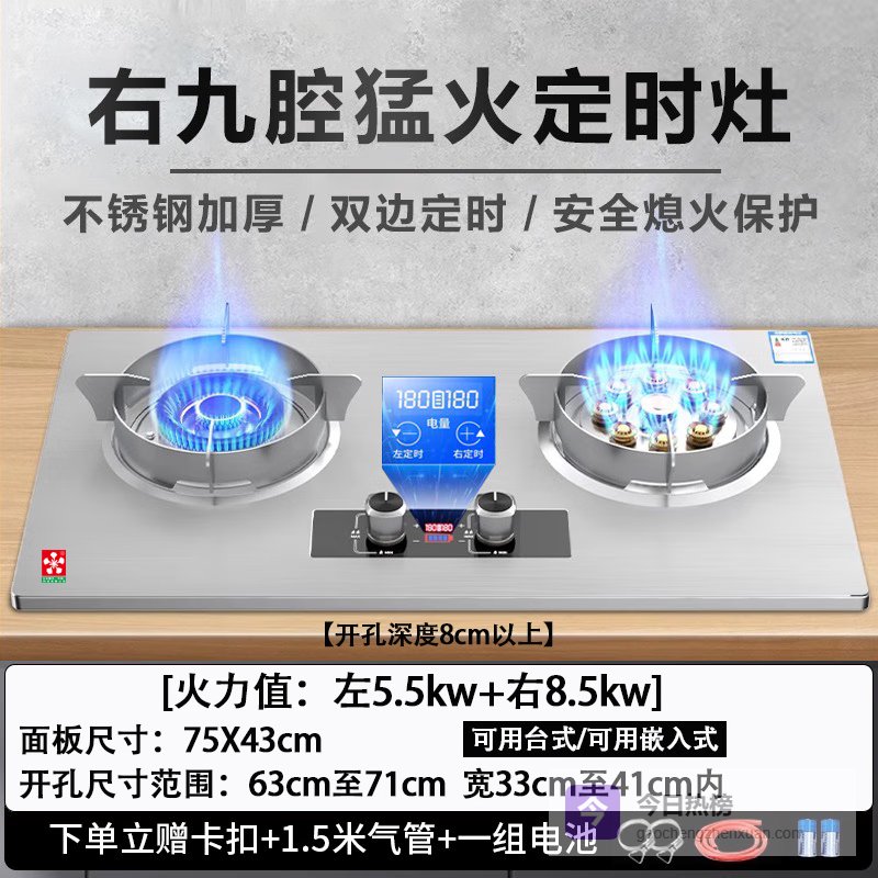 樱花燃气灶双灶家用天然气液化气灶具嵌入式猛火灶台式煤气灶大火力 高配8.5kw不锈钢双层大面板定时 液化气¥