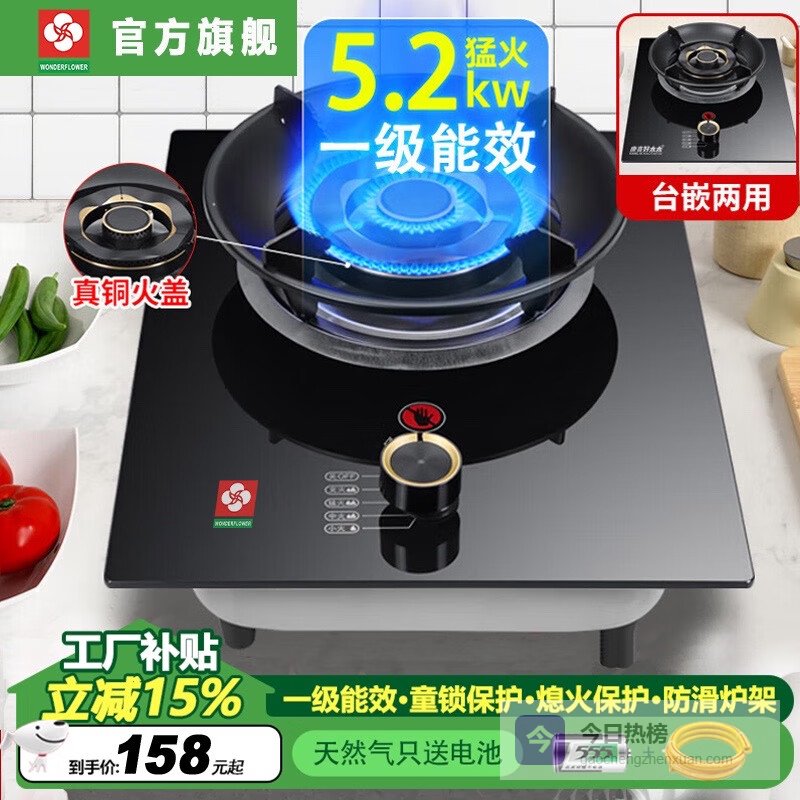 同时,灶具配备热电偶熄火保护,大大提升使用安全性。铝合金底座和铜芯火盖,确保耐腐蚀和导热快速,使用更加稳定持久。一级能效表现出色,热效率达到63%,不仅节能还环保,长时间使用更省气。