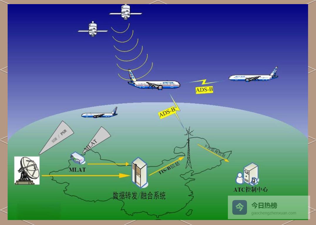 ADS-B(广播式自动相关监视)无需地面询问,机载设备自动采集4维位置(经度、纬度、高度、时间)及附加信息(冲突告警、航迹角、外界温度等), 以1秒甚至更快频率向周围广播。