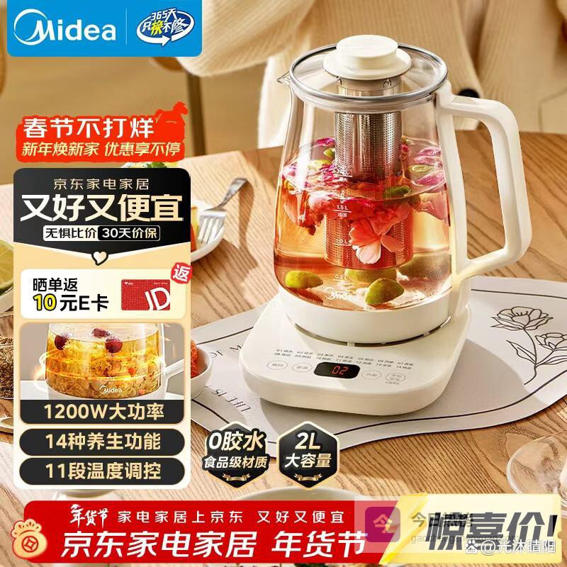 美的养生壶,2L大容量设计,满足全家饮水需求。全自动烧水,操作便捷,316L母婴级材质,安全健康。花茶壶煮茶壶功能多样,12h恒温保温,随时享用温暖饮品。您的健康生活好帮手!
