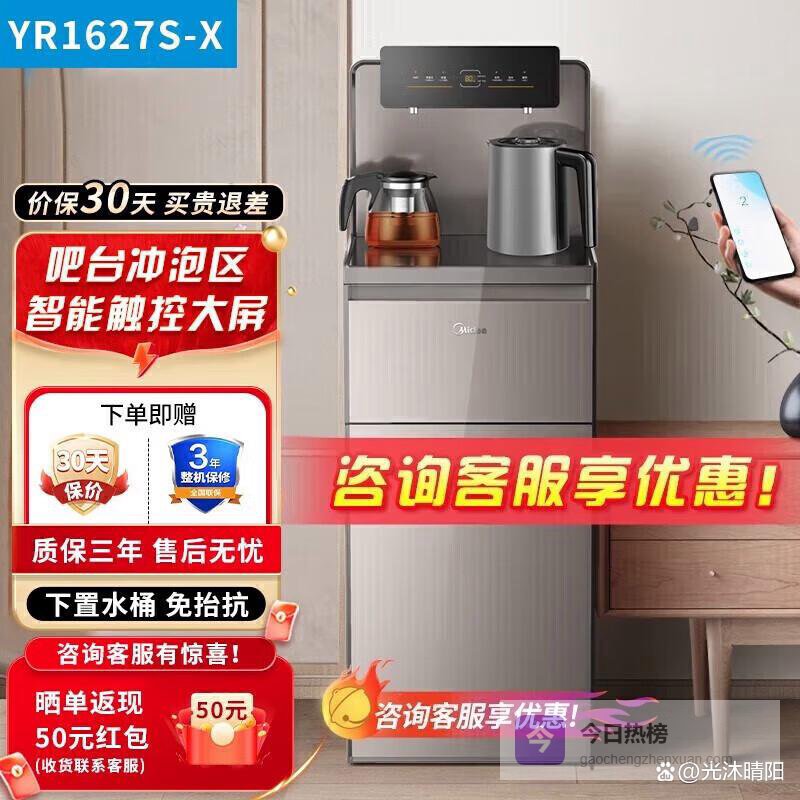 美的(Midea)茶吧机饮水机家用下置式水桶装水抽水器多功能智控茶水柜养生壶柜 YR1627S-X【¥