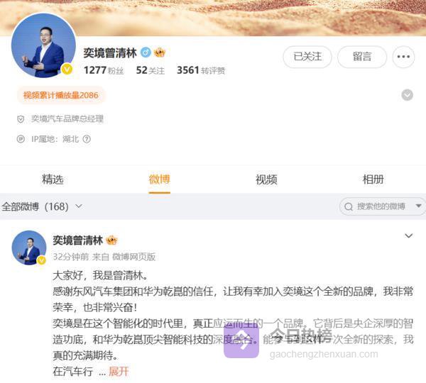 【CNMO科技消息】4月7日,前岚图汽车销售服务有限公司副总经理曾清林发文官宣加入奕境。