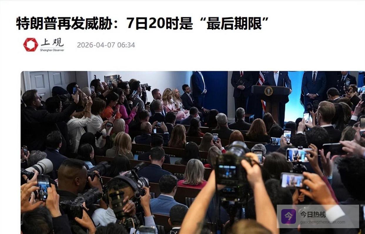 美国总统特朗普在当地时间4月6日的新闻发布会上,抛出了一番震惊世界的言论。 他明确设定,美东时间4月7日20时,就是伊朗达成协议、重新开放霍尔木兹海峡的“最后期限”。