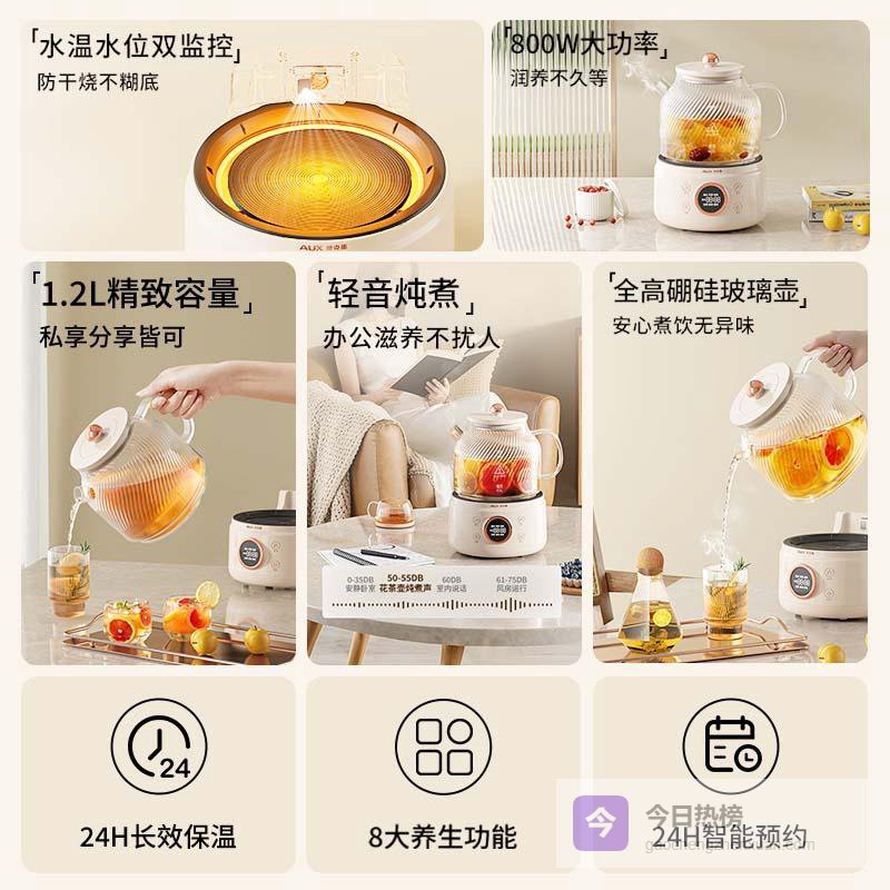 奥克斯(AUX)养生壶全玻璃恒温壶煮茶壶1.2L办公室多功能煮茶壶花茶壶 0金属煮茶器电热烧水壶ASH-08AY68¥